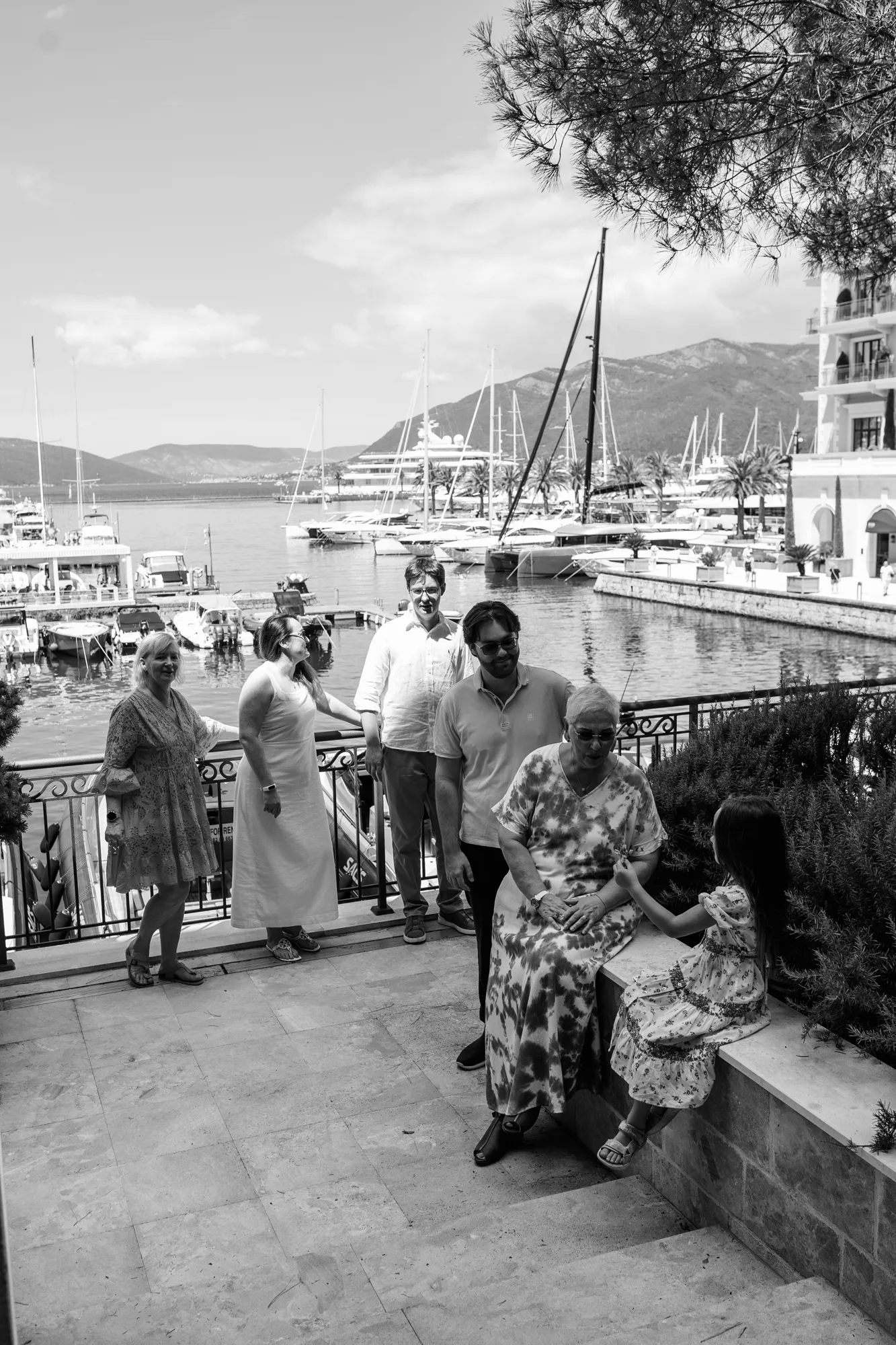 Choosing the right photographer in Montenegro is essential when planning a shoot for a large group. It requires not only technical skill to manage the lighting in such a sunny, bright location but also the ability to make everyone—from the youngest grandchildren to the grandparents—feel relaxed and natural. The result was a warm family story told through vibrant, lively images that reflect both the grandeur of Porto Montenegro and the intimate bond of the family.