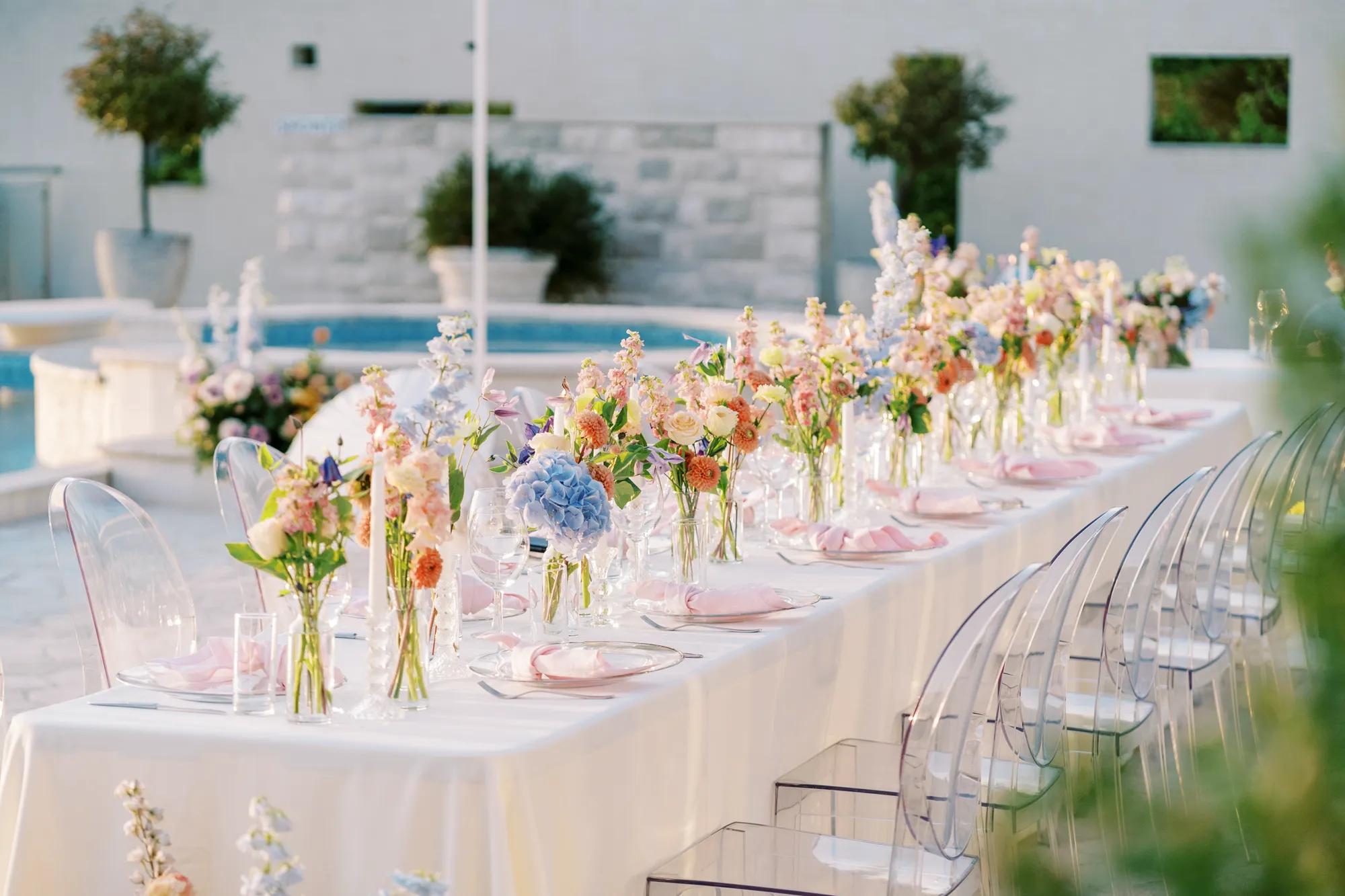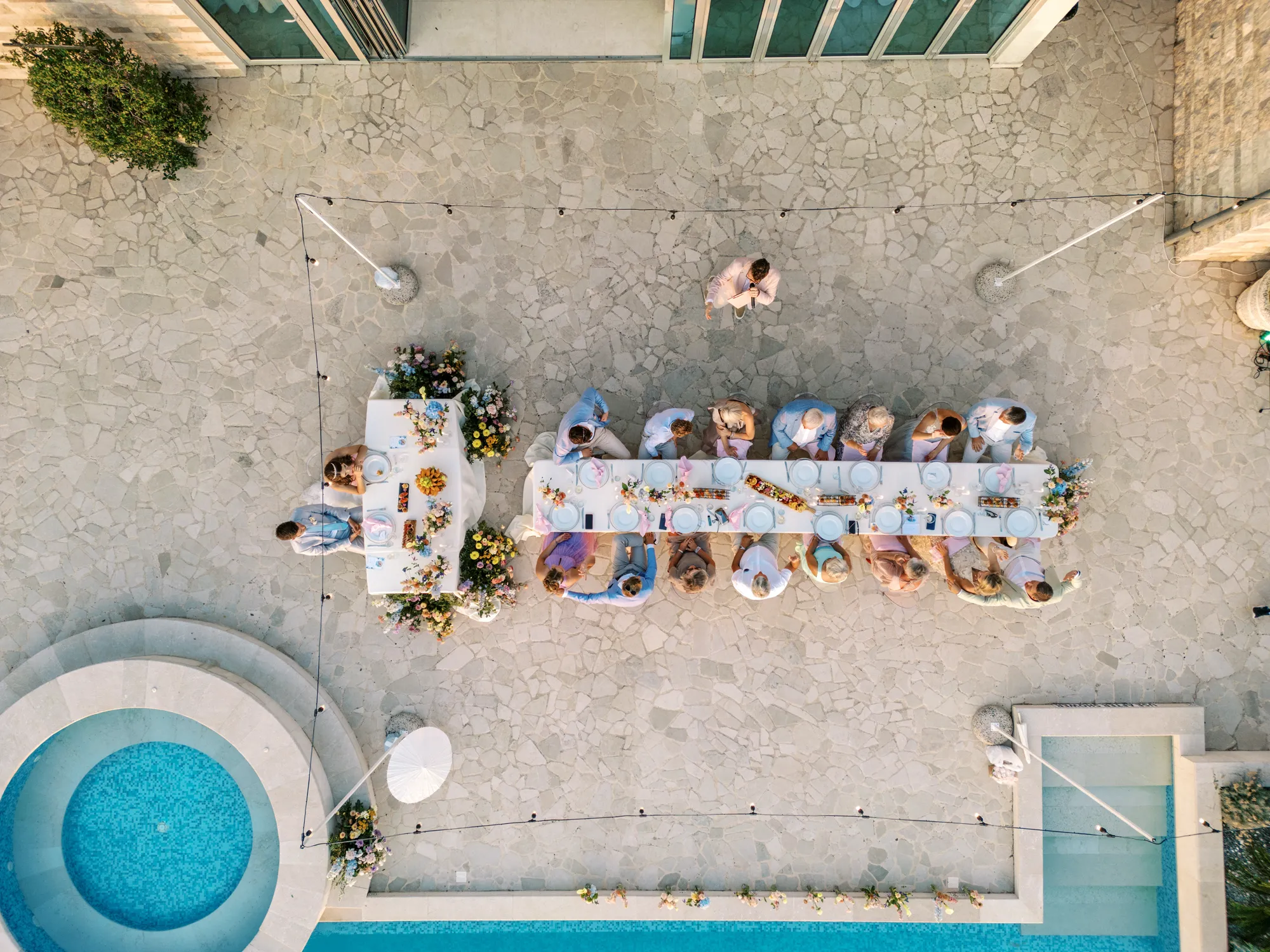 The ceremony décor featured soft florals and natural greenery, enhancing the romantic ambiance. Guests admired the views and the magical setting, making this Sveti Stefan wedding truly unforgettable.