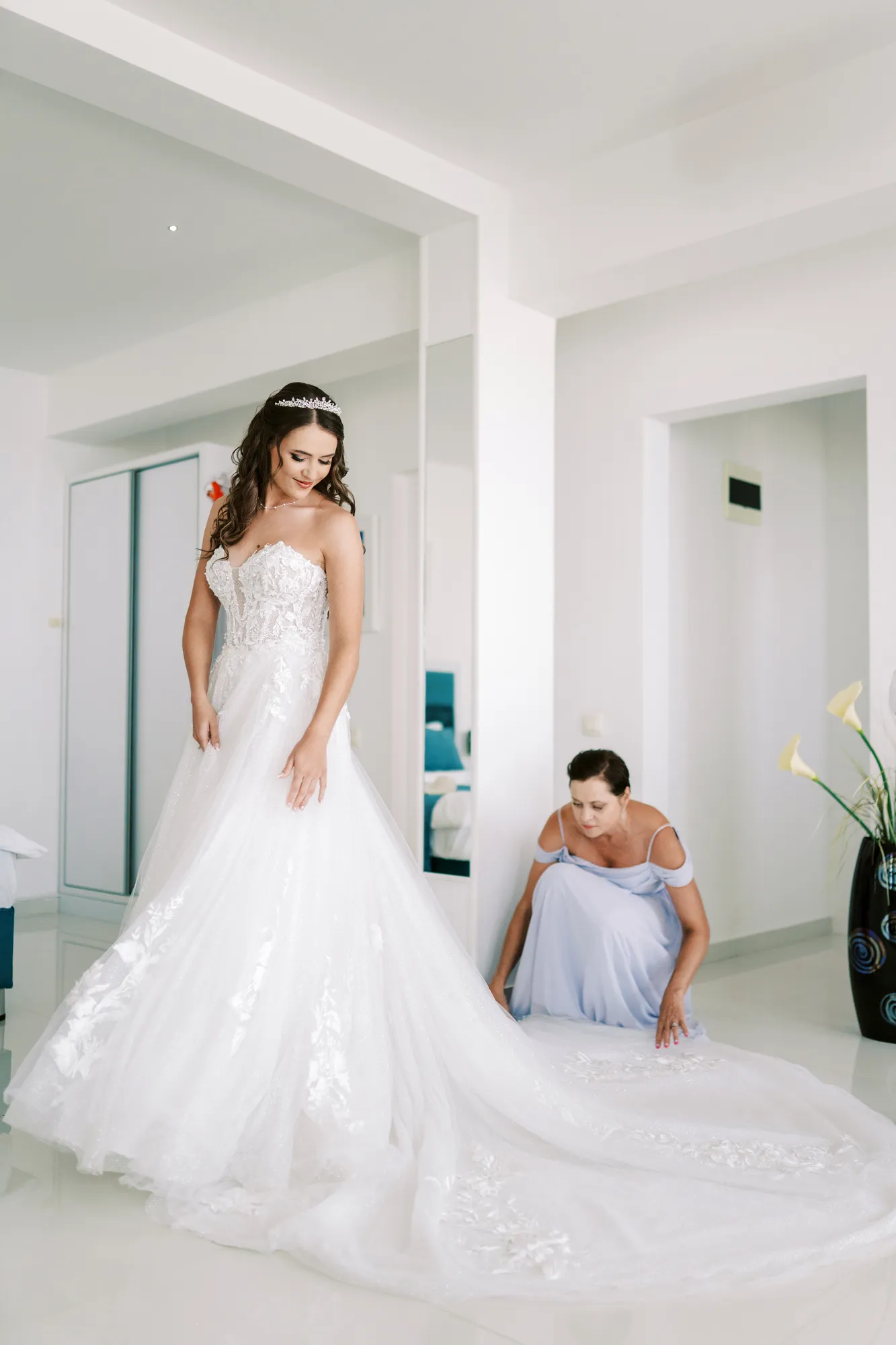 The wedding morning began at a luxurious villa perched high in the Montenegrin mountains. The panoramic views and soft morning light created an ideal setting for the photographer to capture emotional and candid moments.