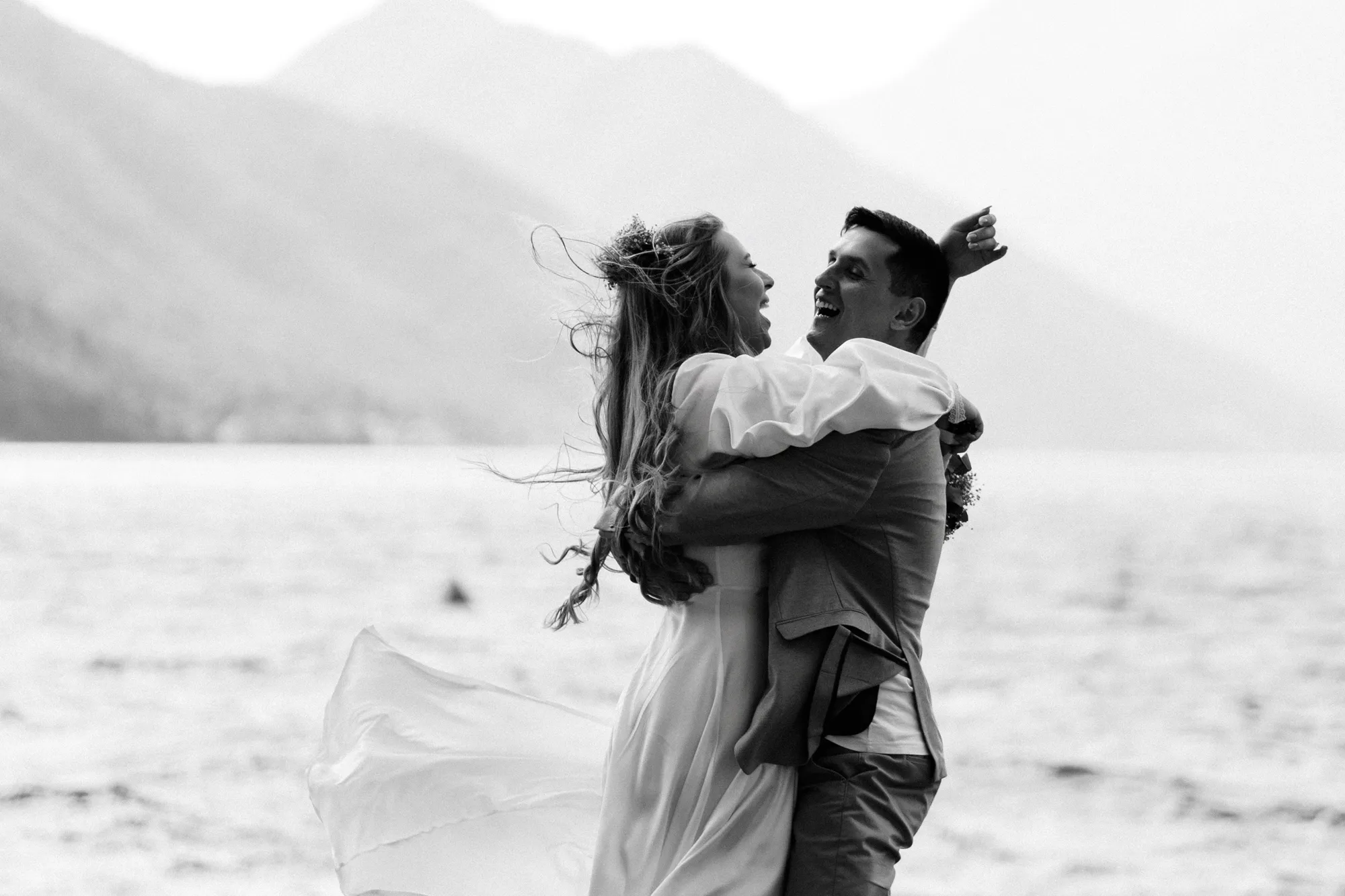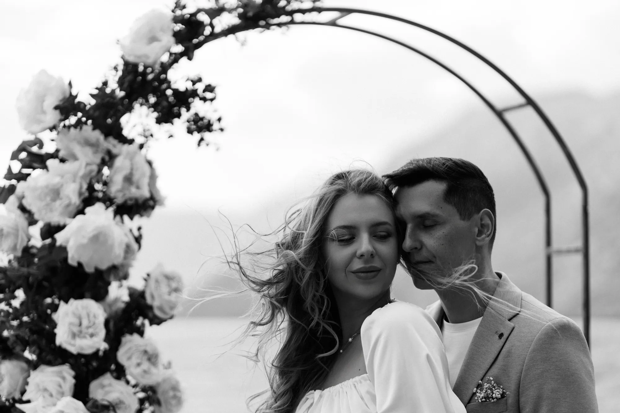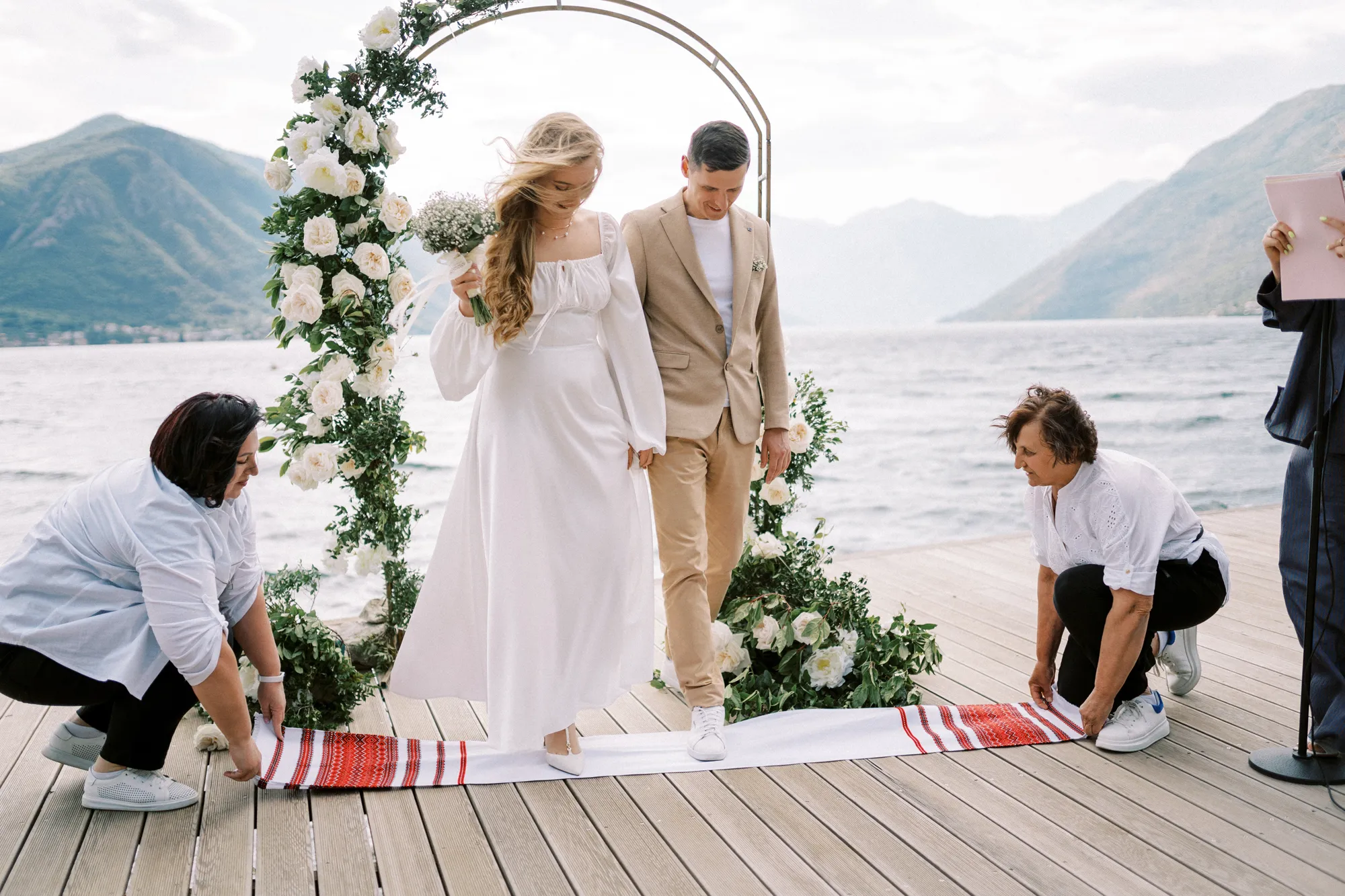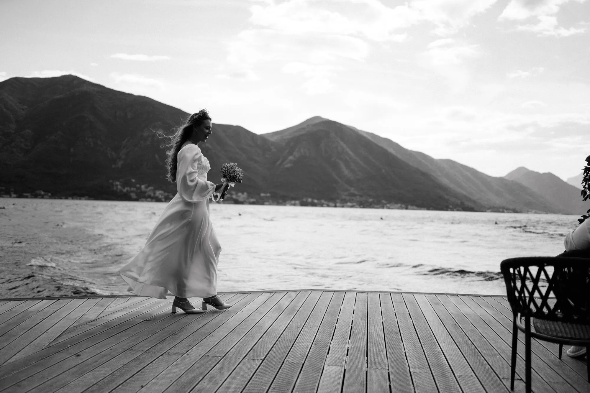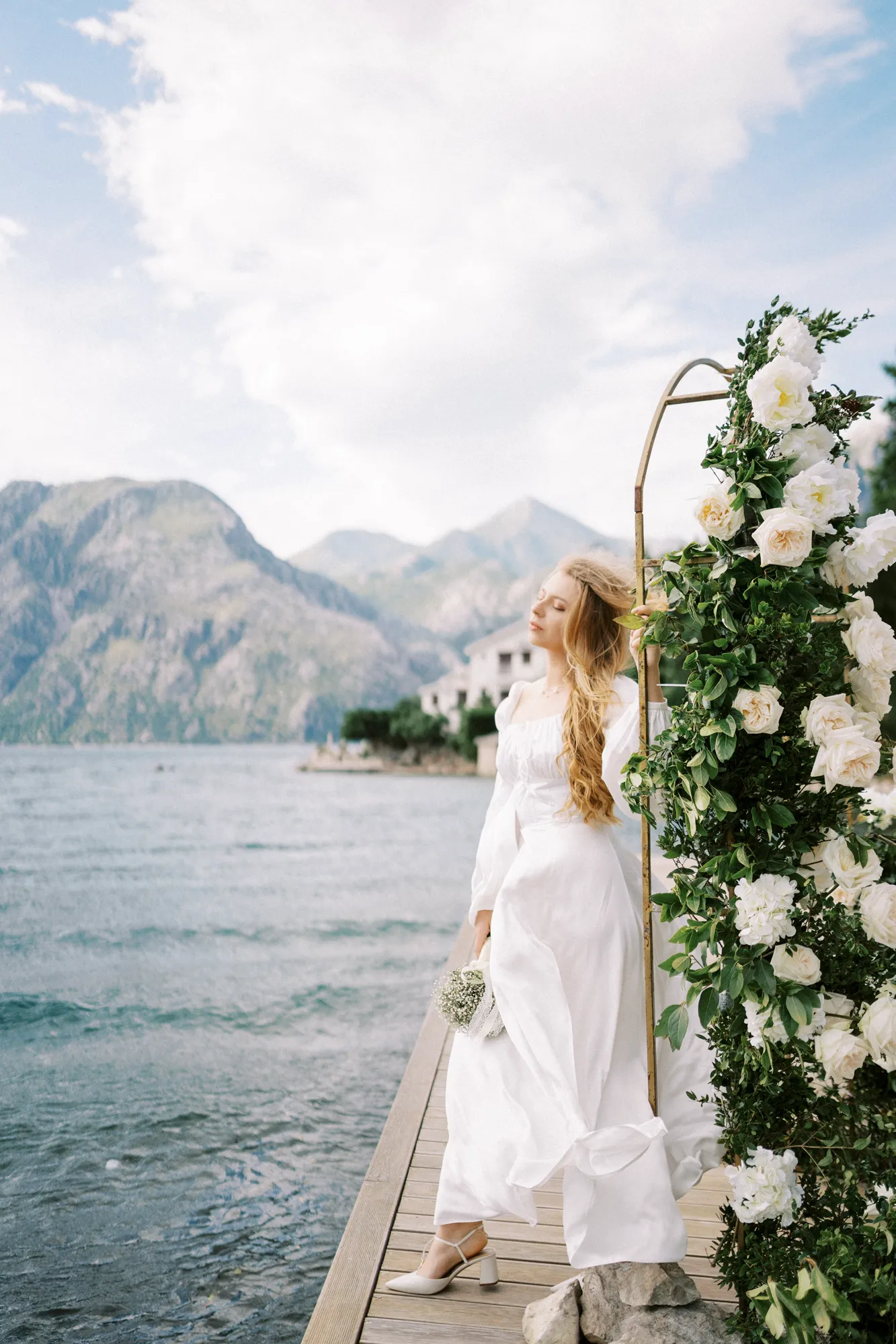 As a wedding photographer in Montenegro, I often shoot in Boka Kotorska Bay, but this windy wedding will stay with me forever. The young couple – he, confident and romantic; she, radiant and tender -met for the first time on a cliff overlooking the bay. Their boat stroll across the waters under gusts of wind was full of sparks: laughter, glances, light touches.