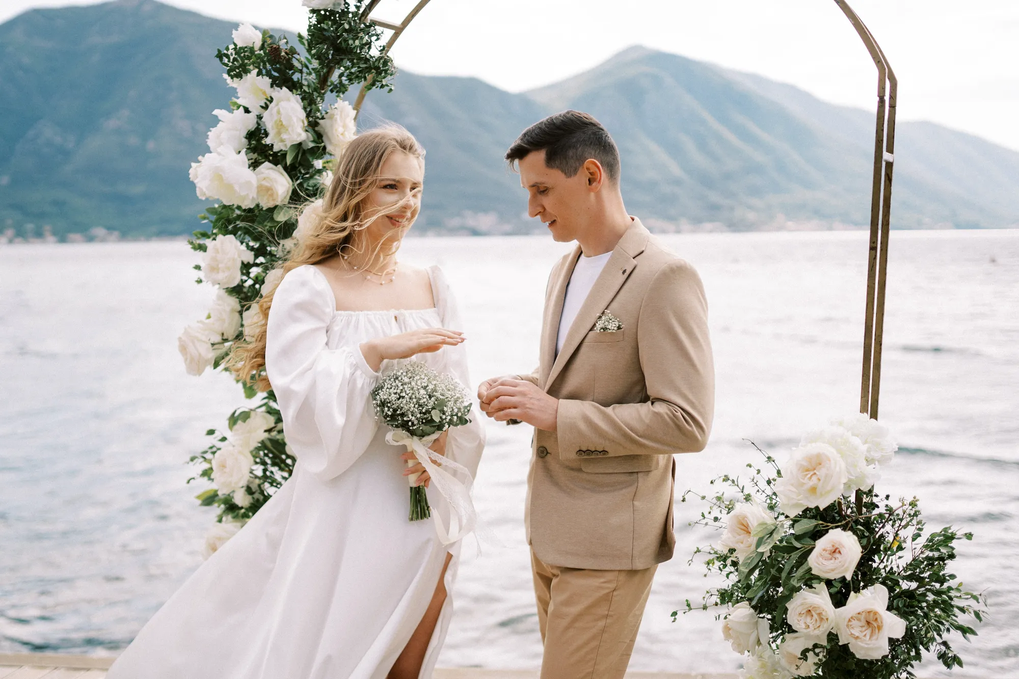 The seaside ceremony was perfect – waves whispering “yes,” and the fantastic sunset light gilding everything around. I captured their genuine emotions: the excitement of the first meeting, tears of joy, a passionate kiss. This couple embodied coziness and love in harmony with Montenegrin nature – their story now lives in my shots.